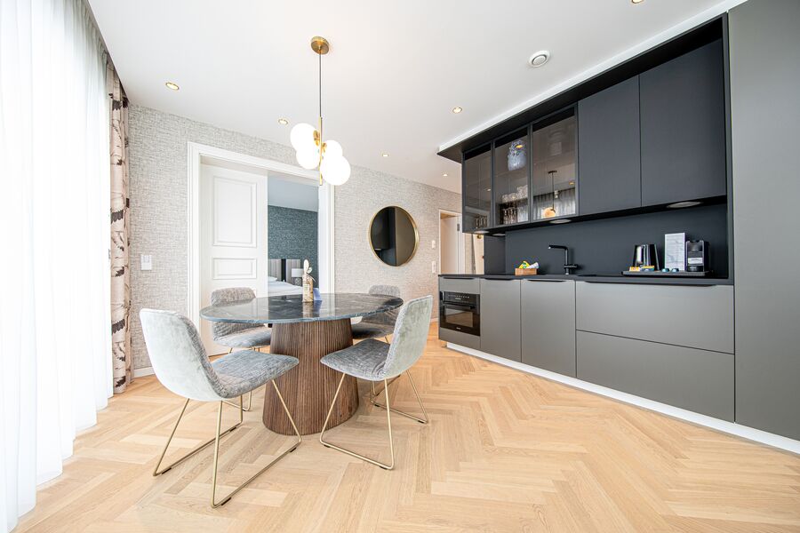 Der erste Eindruck zählt, heißt es. Über diesen Anspruch geht Arielle Suites weit hinaus. Das Niveau der Einrichtung und das durchdachte, atmosphärische Design bezaubern beim ersten Betreten – und überzeugen bis zum letzten Moment des Aufenthalts. Arielle Suites ist ein Architektonisch anspruchsvoller Neubau im Herzen des Ostseebad Sellin, welcher Ende Dezember 2025 fertiggestellt wurde. Insgesamt 6 bis ins letzte Detail durchdachte Appartements stehen potentiellen Gästen zur Verfügung. Das Appartment "Triton" befindet sich im 1. OG der Villa. Der offene Wohn-, Essbereich überzeugt durch hochwertigste Materialien, welche ein sofortiges Wohlgefühl auslösen. Der an den Wohnbereich angrenzende Balkon lädt zum Sonnenbaden ein. Auch die beiden Schlafzimmer, sowie die beiden Bäder mit Dusche und privater Sauna verwöhnen Sie mit Qualtität und Komfort. Die Kombination aus Lage, Architektur und dem seinesgleichen suchenden Design lassen Arielle Suites die Top-Adresse für Ihre nächste ganz persönliche Auszeit sein.